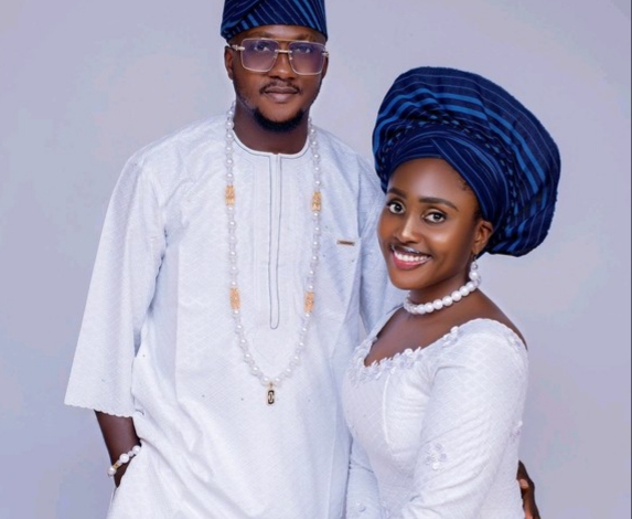 Wannan budurwar ta yi aure inda mijinta ke murna.