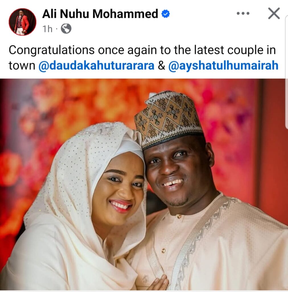 Ali Nuhu ma ba’a barshi a baya ba, ya saka hoton inda yace yana kara taya ma’auratan murna.