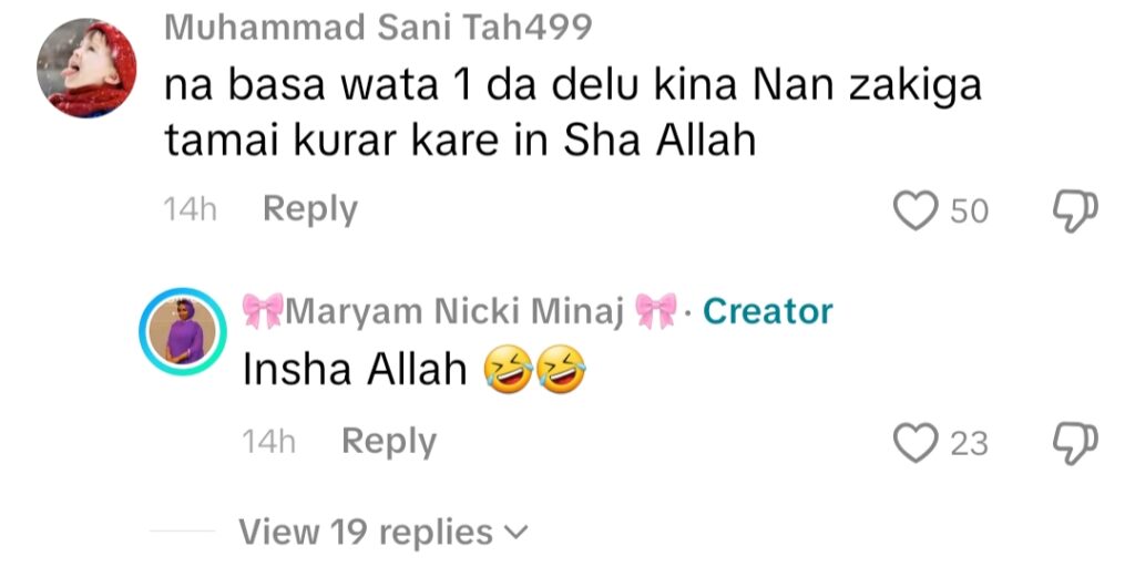 Hakanan wata ta mata comment inda take cewa, ta basu wata daya Sadiya Haruna sai tawa Gfresh Korar kare.