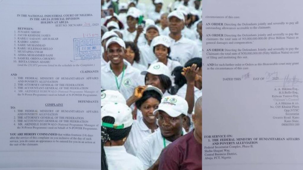 Lauyan ma’aikatan N-power dinne me suna, Barrister A. A. Hikima ya shigar da karar a madadinsu.