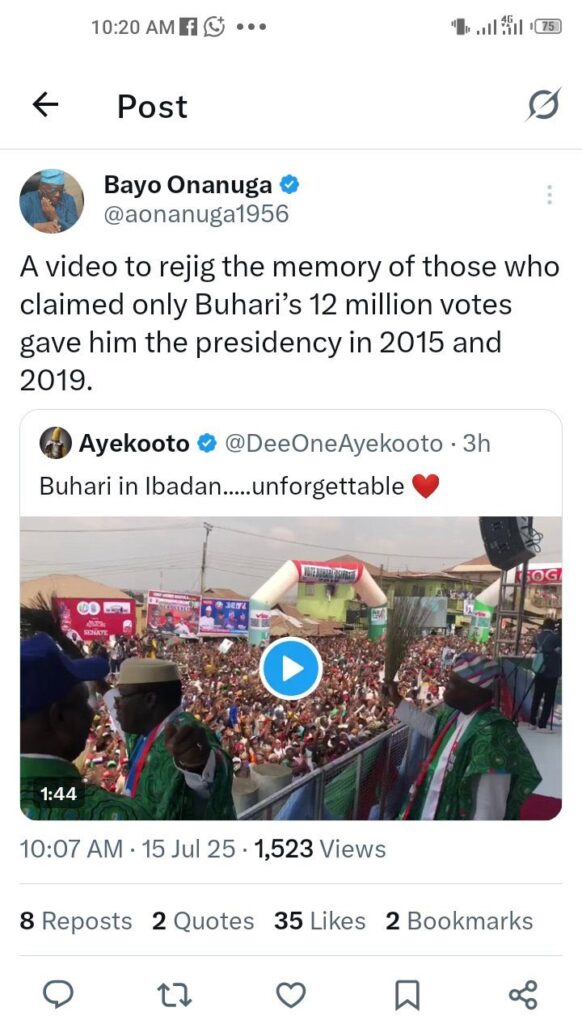 Onanuga ya yi maganane akan wani Bidiyon yakin neman zaben Buhari da aka wallafa wanda yayi a Ibadan.