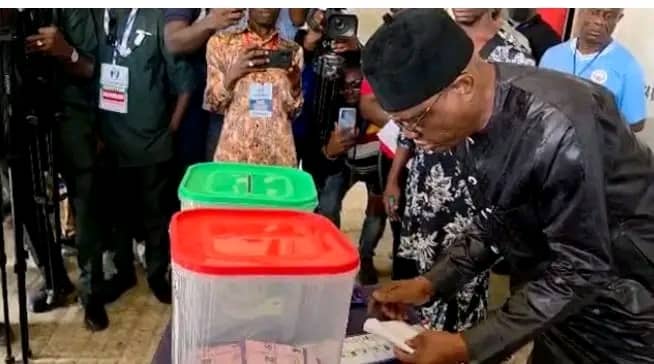 Wike ya kada kuri’ar sa a rumfar zabe me lamba 7 a mazabar ,ward 9 dake yankin Rumuepirikom na karamar hukumar Obio-Akpor.