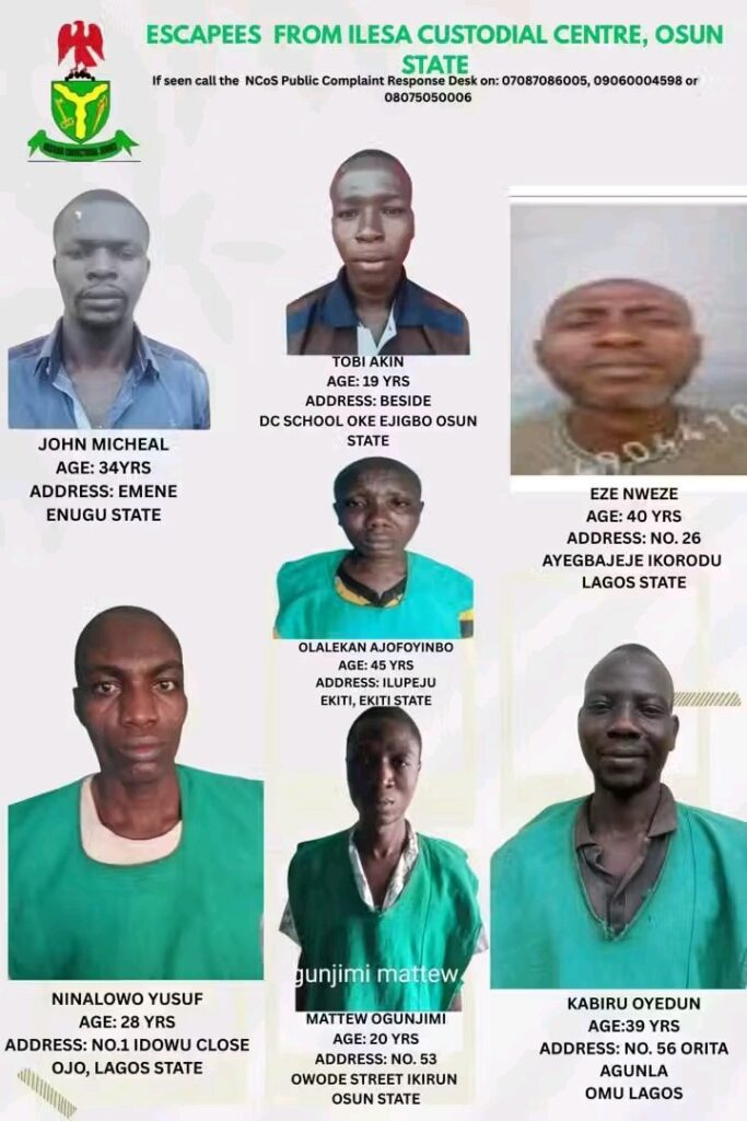 Gwamnatin tarayya ta wallafa hotunan masu laifi da suka tsere daga gidan gyara hali na Ilesa dake jihar Osun.