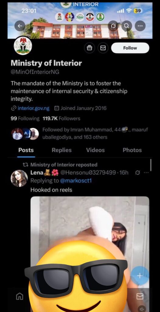 Shafin ma’aikatar harkokin cikin gida na Najeriya a dandalin X sun wallafa Bidiyon batsa wanda aka fi sani da Blùè Fìm.