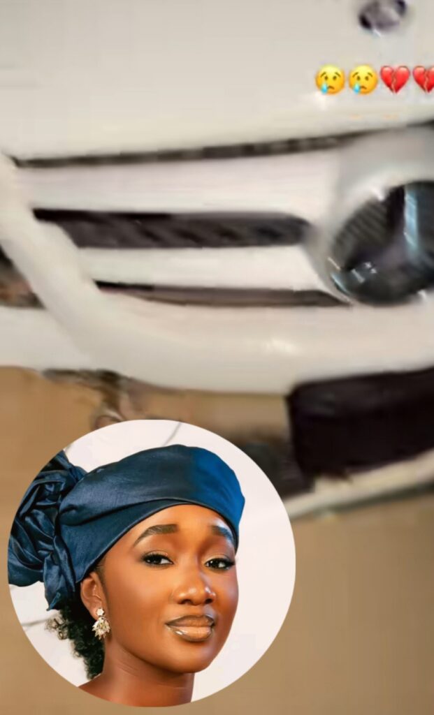 Ta bayyana hakane a shafin nata na Tiktok inda ta wallafa Bidiyon motarta GLK wadda aka gani a cikin rami duk ta lalace.