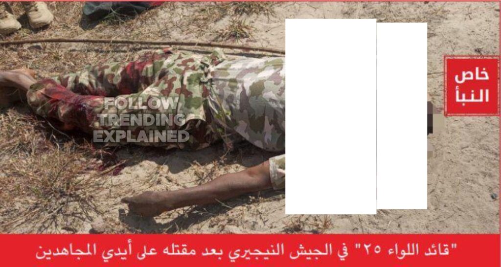 Kungiyar da ta kaiwa tawagar Brigadier General Muhammad Uba harin kwantan bauna, ta kamashi kuma ta kashe, watau ÌŚWÀP ta saki hoton gawarsa.