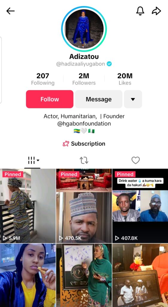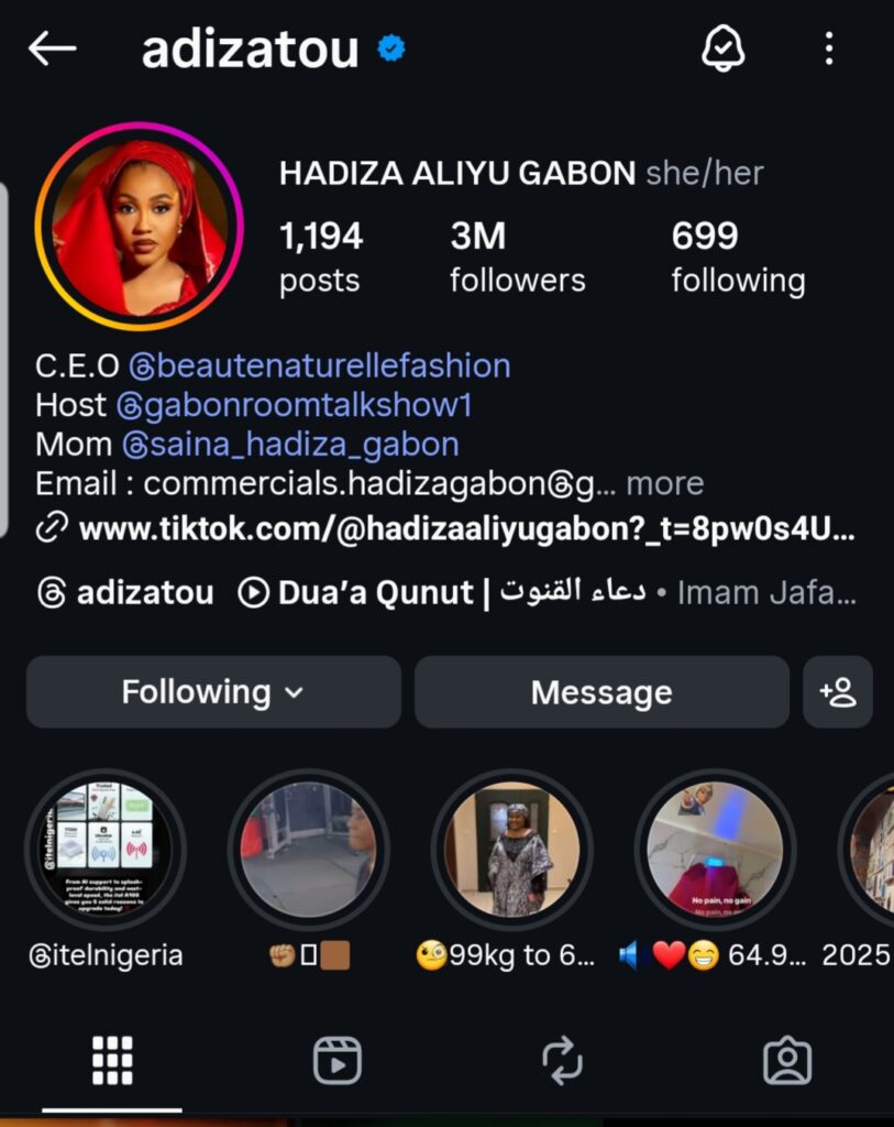 Saidai Hutudole har zuwa yanzu ya lura cewa Hadiza Gabon bata rasa mabiya ba ko kuma mabiyanta basu ragu ba a shafukanta na sada zumunta.