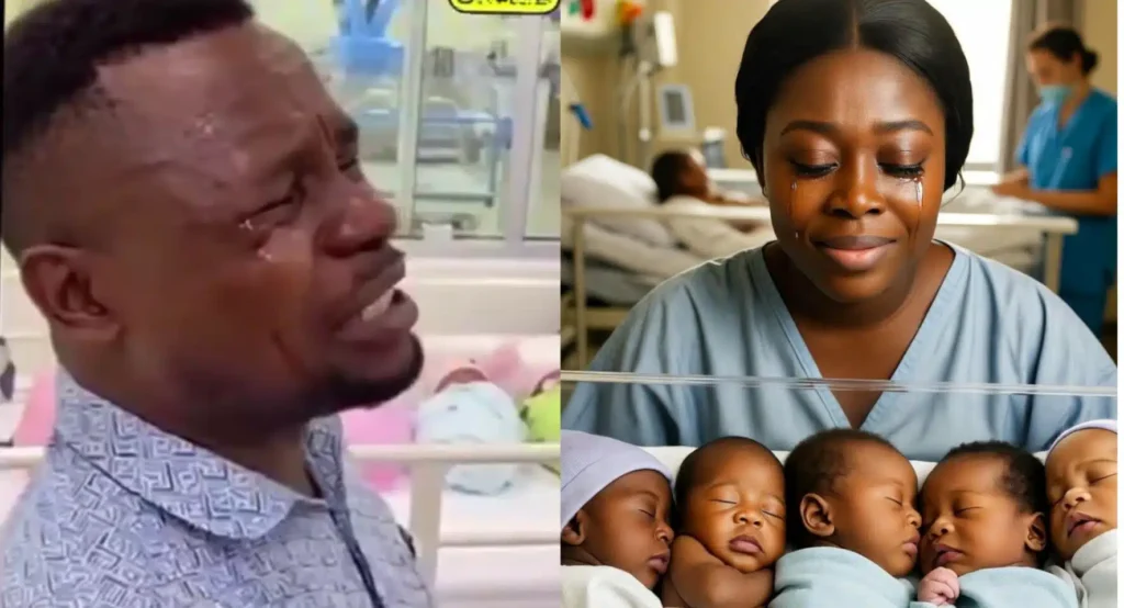 Wani magidanci dake tsakanin shekaru 30 ya fashe da kuka bayan da matarsa ta haifi ‘yan 6.