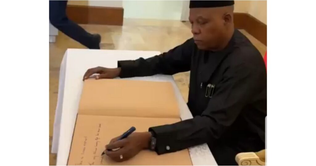 Bidiyon mataimakin shugaban kasa, Kashim Shettima na rubutu ya dauki hankula.