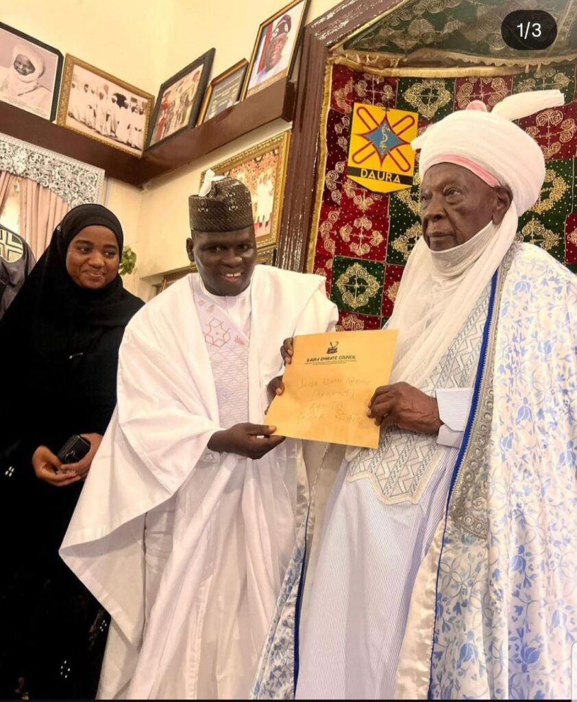 Bidiyo da hotunan nadin sun karade kafafen sadarwa inda aka ganshi yana karbar takardar nadin sarautar daga hannun sarkin.