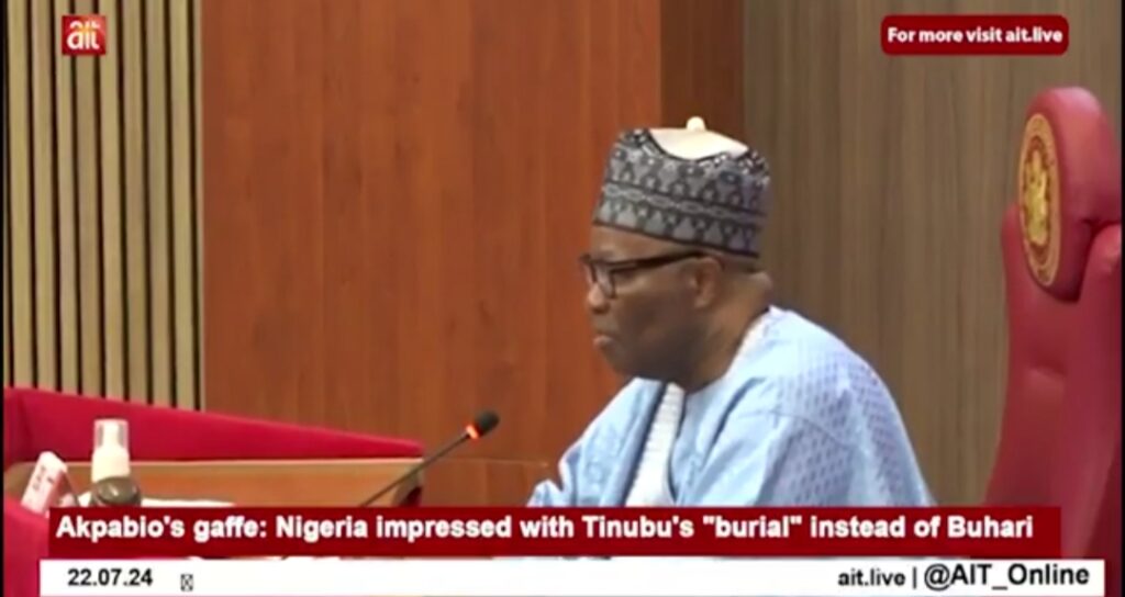 Kakakin majalisar Dattijai Sanata Godswill Akpabio yayin da yake jinjinawa shugaban kasa, Bola Ahmad Tinubu kan kokarin da yayi a wajan jana’izar Tsohon shugaban kasa, Marigayi Muhammadu Buhari.