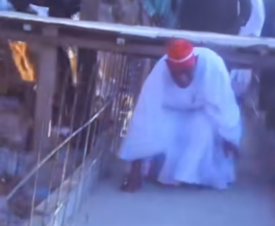An hangi Gwamnan Kano, Abba Kabir Yusuf yana rarrafe inda ya bi ta kasan wata gada da ake ginawa ya wuce a unguwar Lamido Crescent.