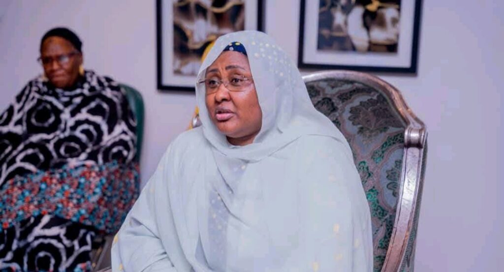 An samu wasu suna saka hoton matar tsohon shugaban kasa, Marigayi Muhammadu Buhari, watau A’isha Buhari suna cewa ga bazawara idan akwai me so.