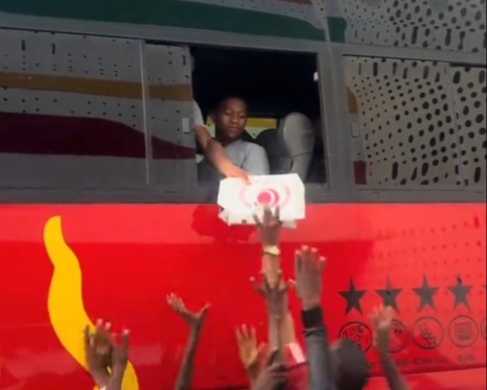 ‘Yan kwallon wanda suka je filin kwallo na MKO Abiola dake Abeokuta dan wasa da Remo Stars sun rika jefawa ‘yan Najeriyar sauran abincin da suka ci suka rage.