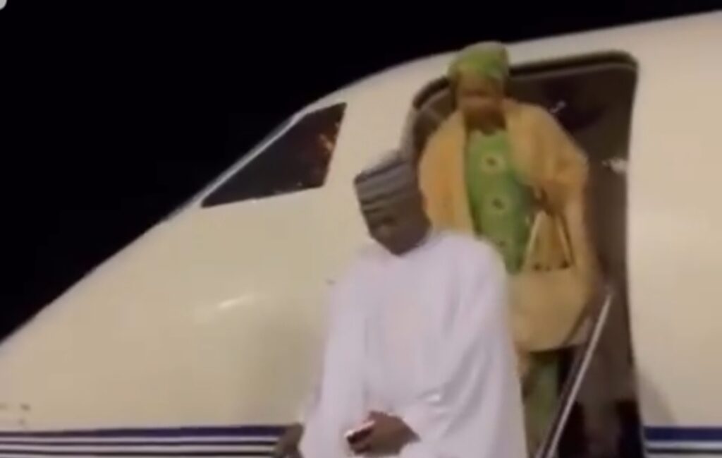 Tsohon Ministan shari’a, Abubakar Malami kenan a wannan Bidiyon tare da Dansa da matarsa suka koma gida a jirgin sama bayan da aka bayar da belinsu.