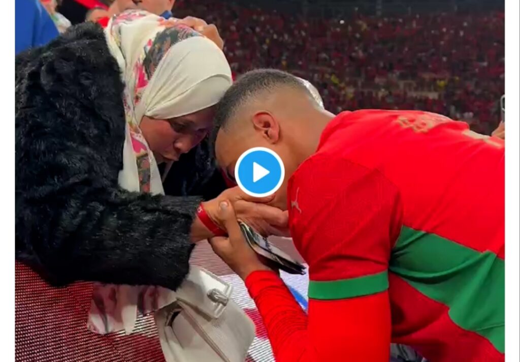 Wannan dan kwallon kasar Morocco, Igamane ne yayin da yake murnar nasarar da suka samu akan Najeriya tare da mahaifiyarsa da ta je kallonsa a filin wasan.