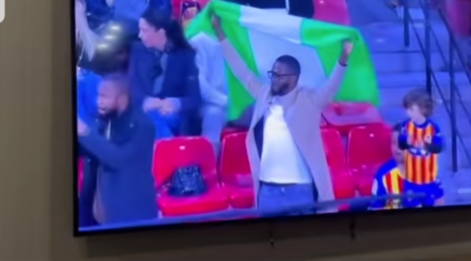Kyamarar daukar kwallo a wasan da aka yi tsakanin Sevilla vs Valencia ta nuna tauraron mawakin Arewa, Ali Isa Jita rike da Tutar Najeriya.