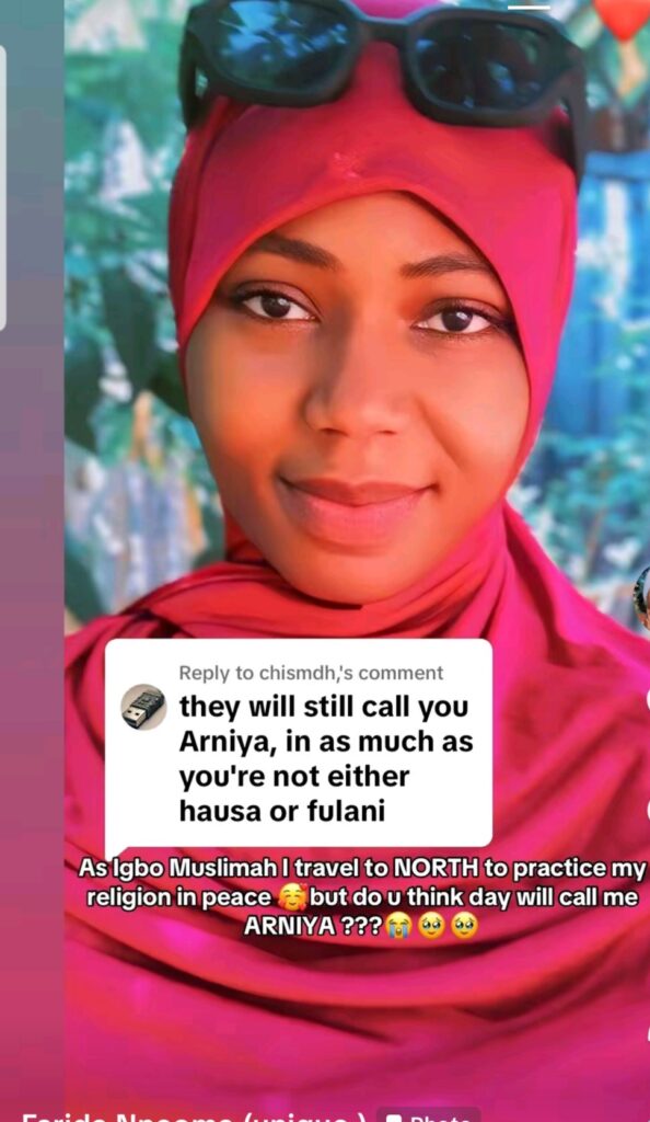 Wannan matashiyar inyamura Musulma me suna Farida Nneoma ta bayyana cewa, tana son dawowa Arewa da zama amma tana tsoron kada a rika kiranta da sunan Arniya.