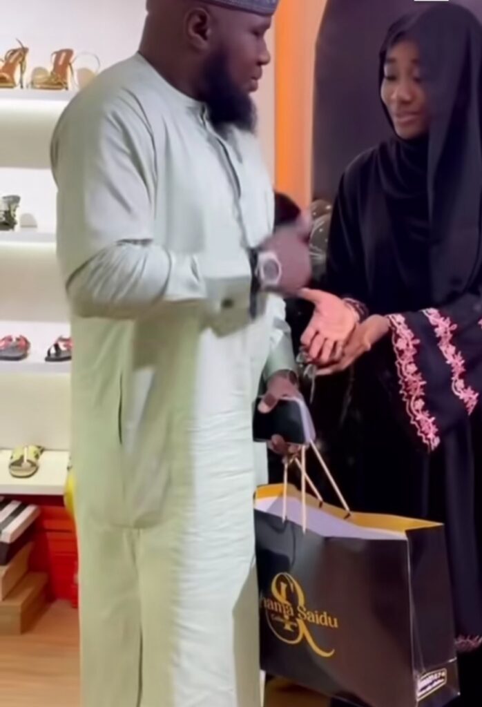 Rahama Saidu me babban shago ta dauki hankula inda ta mikawa daya daga cikin kwatomominta hannu su gaisa amma yaki yadda ya mika mata hannu.