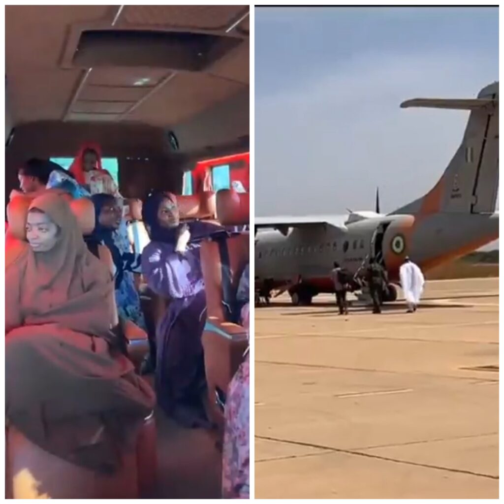 Bidiyon wasu ‘yan mata a cikin motocin Alfarma, Sojoji da yawa na musu rakiya hadda jirgin sama ya dauki hankula sosai.