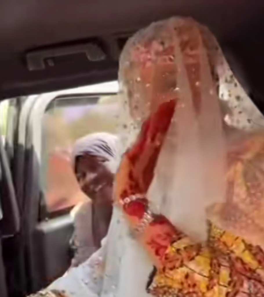 Tauraruwar fina-finan Hausa, Rahama Sadau kenan a yayin da aka kai ta dakin Mijinta bayan da tun tuni aka daura auren.
