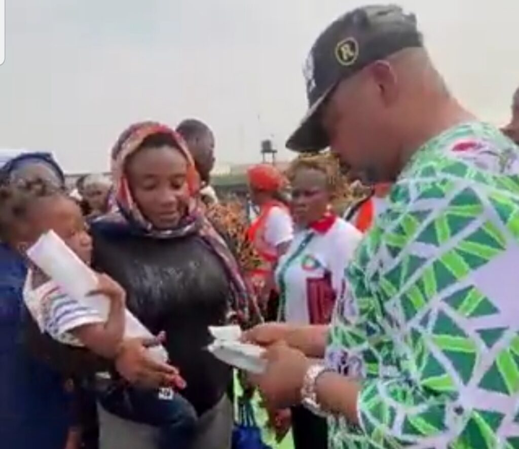 Bidiyon ya bayyana yanda aka rika rabawa mutanen da suka je babban taron jam’iyyar APC na kasa da aka yi a Abuja Naira 5000.
