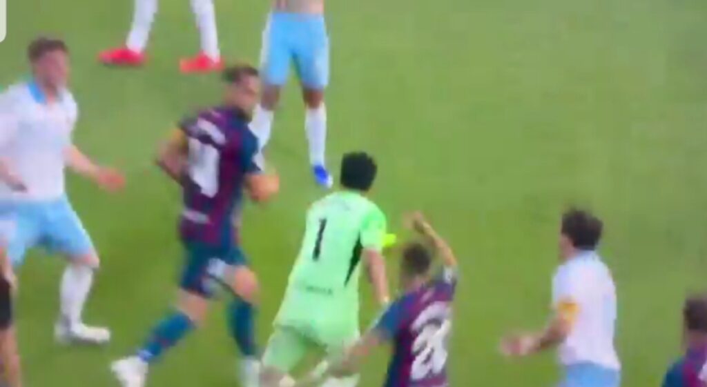 Ya ture dan wasan kungiyar Huesca da suke buga wasa da ita inda aka bashi jan Kati, saidai ya kara zuwa ya mangare wani dan wasan kungiyar.