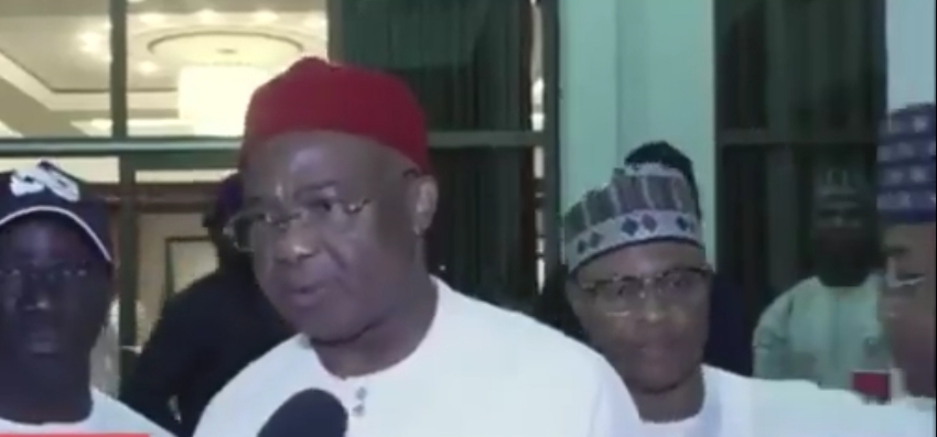 Gwamnan jihar Imo, Hope Uzodinma a yayin da zai fara ganawa da manema labarai, ya kira Gwamnoni inda yace su zo su bashi karfin gwiwa inda na Delta dana Kogi suka je suka tsaya a kusa dashi.