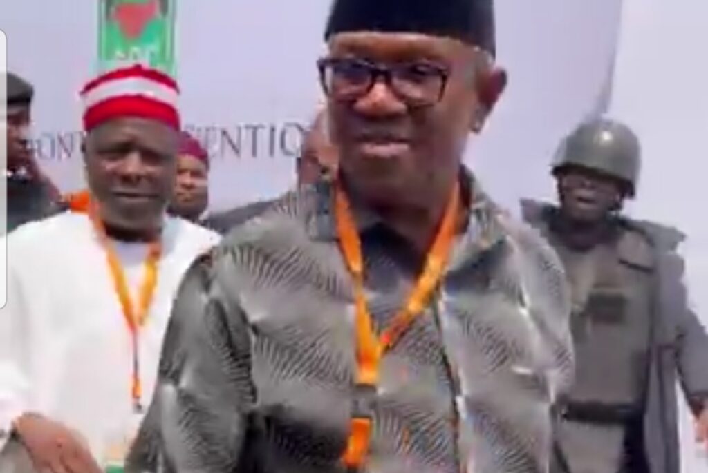 Dr. Rabiu Musa Kwankwaso da Peter Obi kenan a yayin da suke isa wajan babban taron jam’iyyar ADC dake gudana a Abuja.