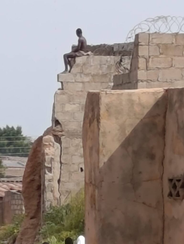 Yace ba zai sauko daga saman katangar ba sai an dawo masa da matarsa.