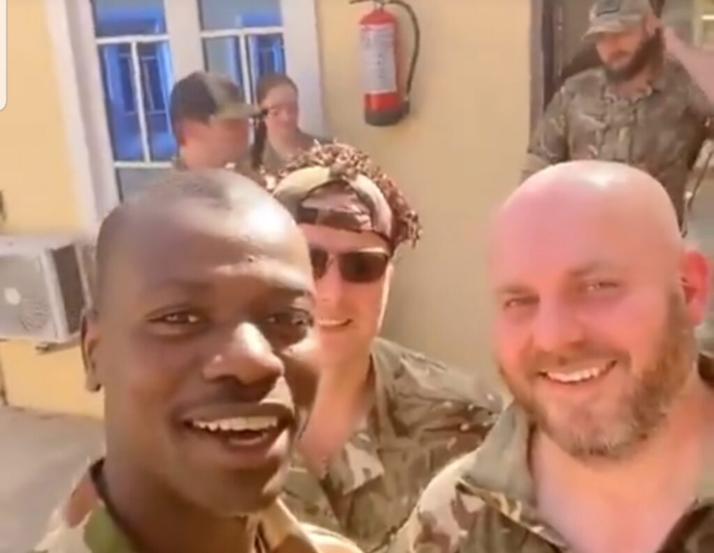 An hangi wasu sojojin Najeriya tare da sojojin kasar Amurka da suka zo tayasu aiki suna daukar hotunan Selfie.