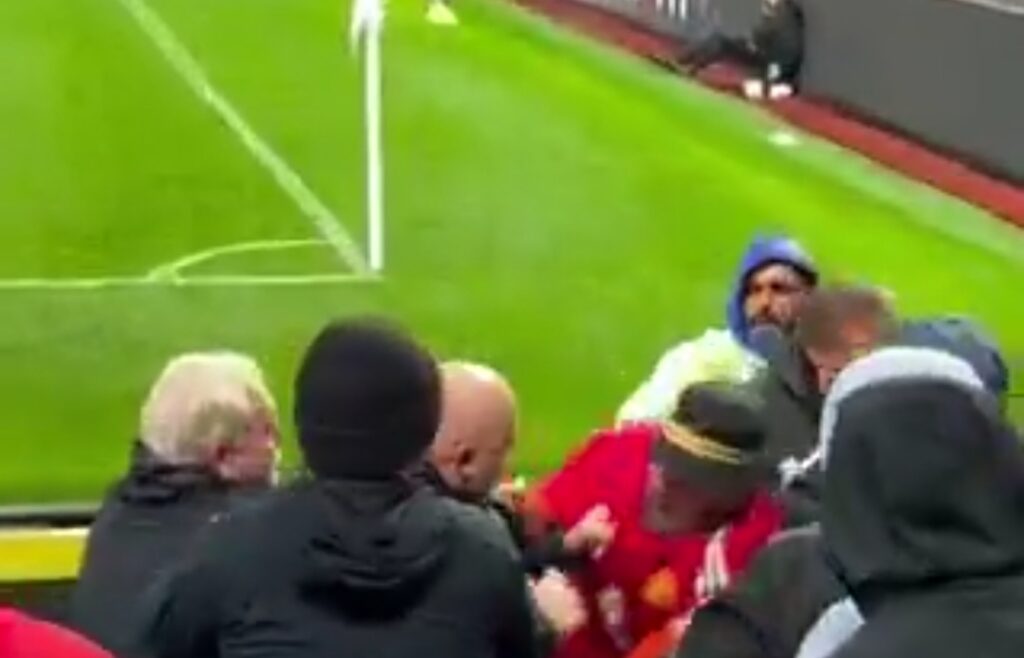 An ga wasu magoya bayan Kungiyar kwallon kafa ta Manchester United suna ta fada a filin wasan yayin da ake tsaka da wasan su da Brighton.