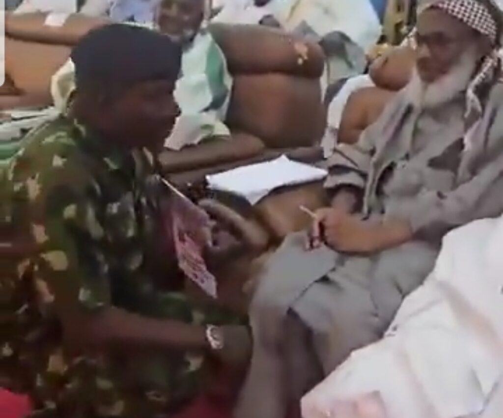 Kalli Bidiyon: Yanda Wani babban soja ya durkusa a gaban Sheikh Gumi, lamarin ya dauki hankula sosai