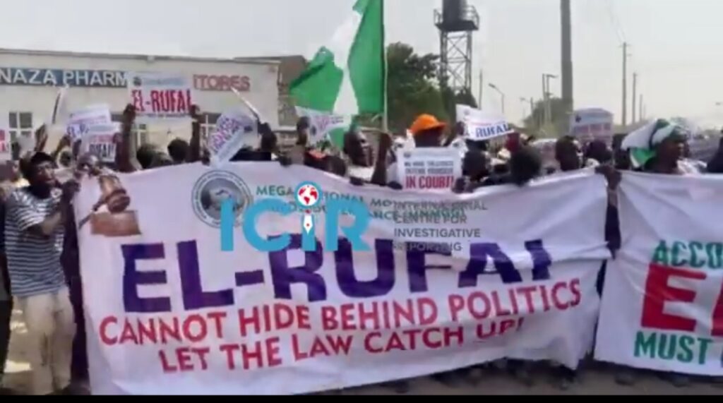 A yayin da a yau ya amsa gayyatar EFCC ya je ofishinsu, an ga wasu masu zanga-zanga sun fito suna kiran da a hukunta malam Nasiru Ahmad El-Rufai.