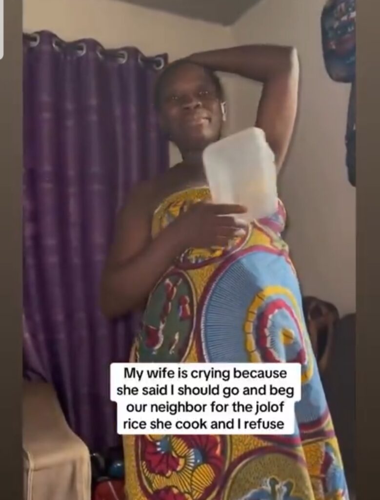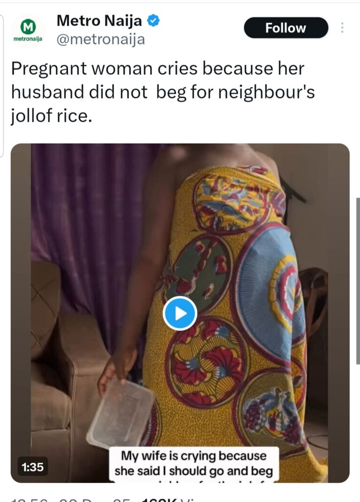 An ga matar rike da kwano a wani Bidiyo da ya watsu sosai inda tacewa mijin nata ya shiga Makwabta ya roko mata shinkafar saboda tana son ci.