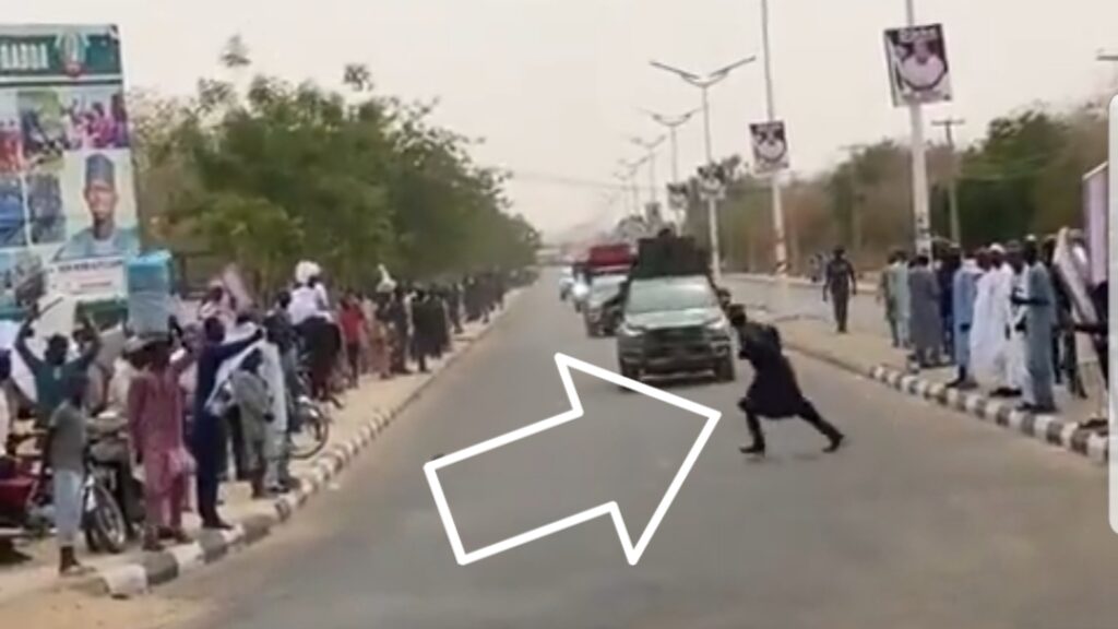 Wannan wani dan kasada ne da ya baiwa mutane mamaki inda aka ganshi yana tsallaka Titi yayin da tawagar motocin shugaban kasa, Bola Ahmad Tinubu ke wucewa.