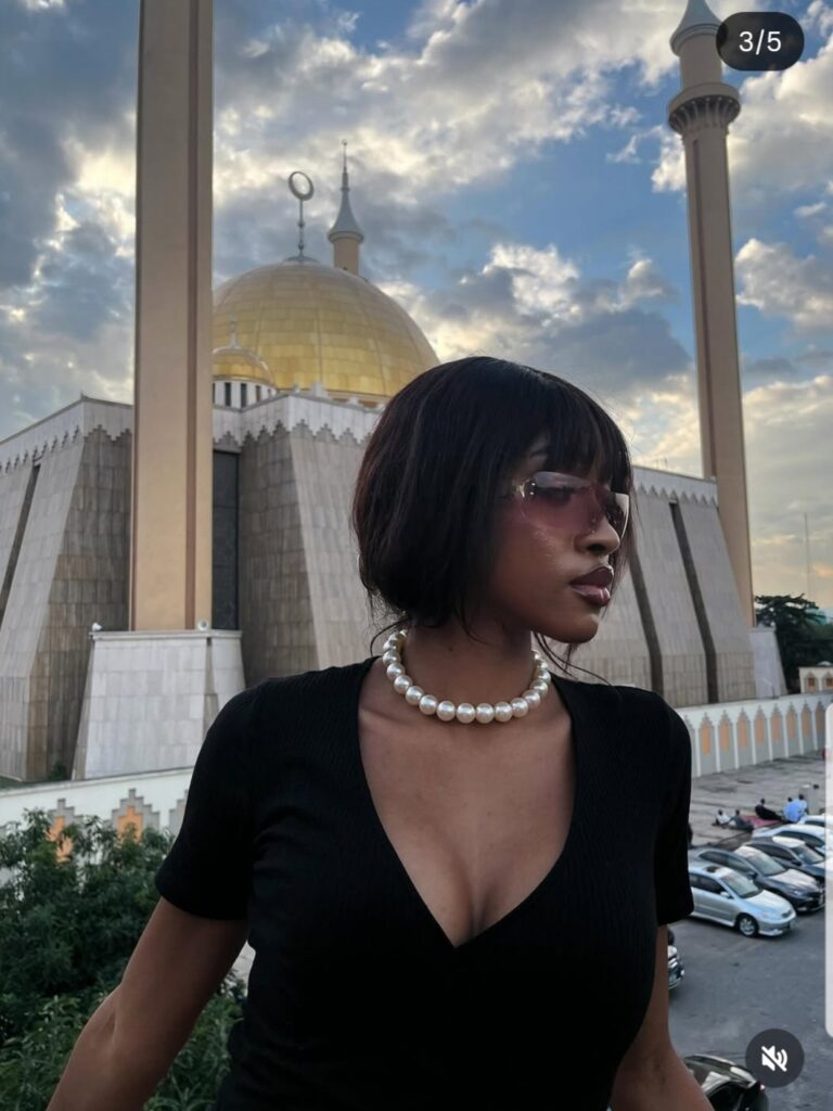 Kalli Hotuna: Wannan ‘yar Kudun Na shan Allah wadai saboda zuwa ta dauki hoto a masallacin Abuja da shigar Banza