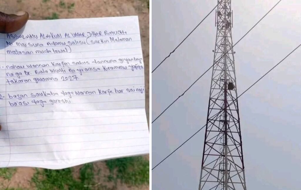 Wani matashi a Bauchi ya hau kan karfen wayar Salula (Mast) ba zai sauko ba sai Dr. Bala Wunti ya yarda zai yi takaran gwamnan Bauchi a 2027.
