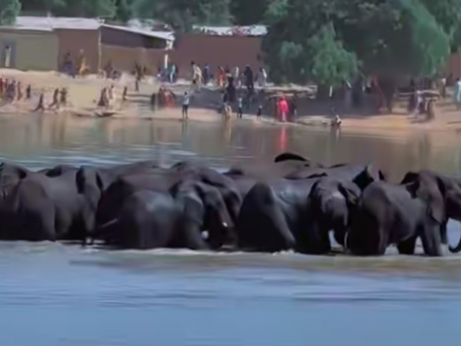 A jiyane dai muka samu Rahoton cewa, Giwaye sun bayyana garin Kala Balge na jihar Borno inda mutane suka taru suna kallonsu.