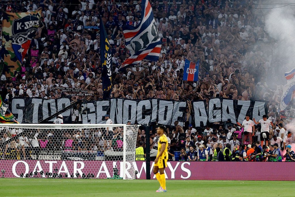 Wani abu da ya kara daukar hankula a wasan shine yanda magoya bayan PSG suka rika data rubutu me dauke da neman a dainawa mutanen Gàzà kisan Kare dangi.