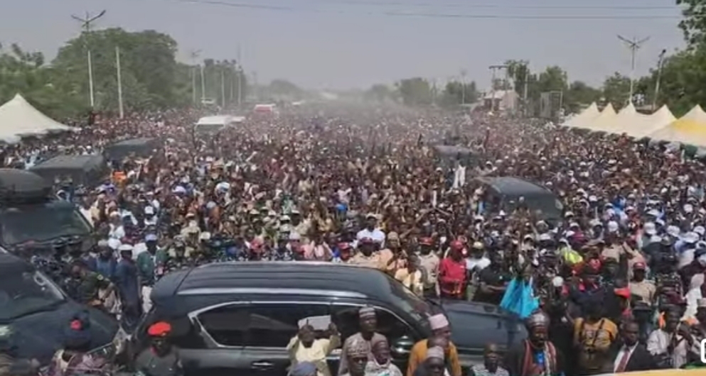 Rahotanni daga Daura jihar Katsina na cewa, Kilometre 10 daga gidan Buhari jama’a ne ba masaka tsinke.