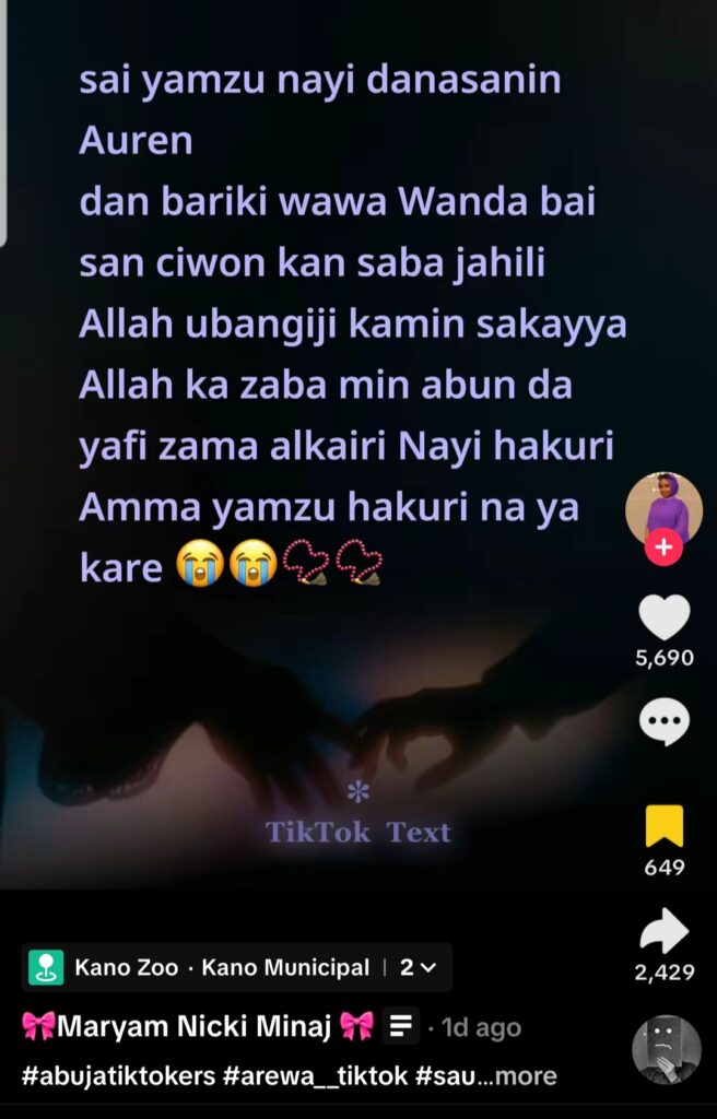 Ta bayyana hakan a shafin ta na Tiktok.