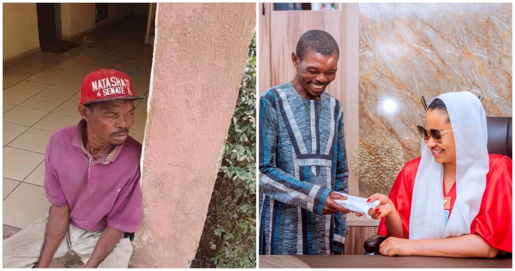 Sanata Natasha Ta Ci Karo Da Hoton Wannan Mutumin Ne Dauke Da Hular Da Aka Rubuta Sunanta A Jiki, Ganin Yadda Mutumin Ya Yi Kalar Tausayi, Hakan Ya Sa Ta Sa Aka Nemo Shi Ta Ba Shi Wani Kunshi Na Kudi