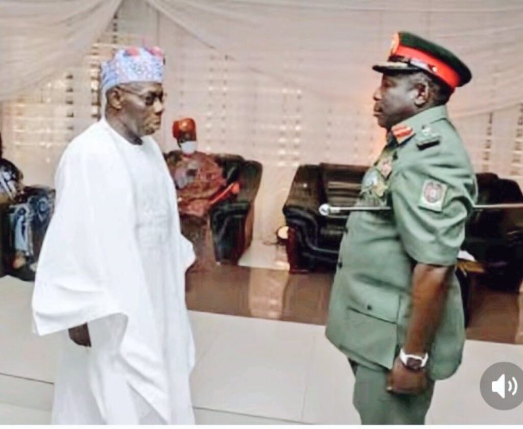 Tsohon shugaban kasa, Janar Olusegun Obasanjo me ritaya tare da dansa, Brigadier General Adeboye Obasanjo kenan a wannan hoton.