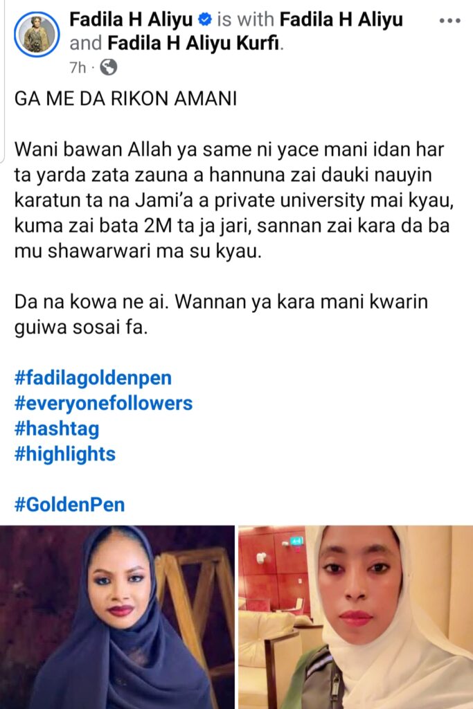 Wani bawan Allah ya baiwa Amani Kyautar Naira Miliyan 2, Fadila H Aliyu ta sha Alwashin riketa