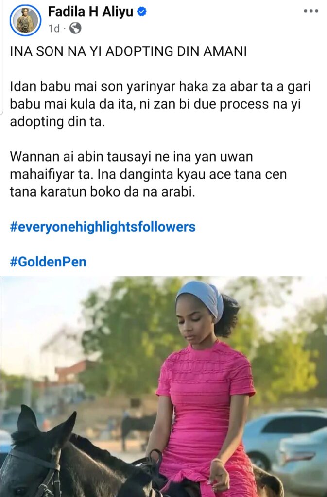 Tauraruwar kafafen sada zumunta, Fadila H. Aliyu tasha Alwashin daukar Amani dan ta riketa.