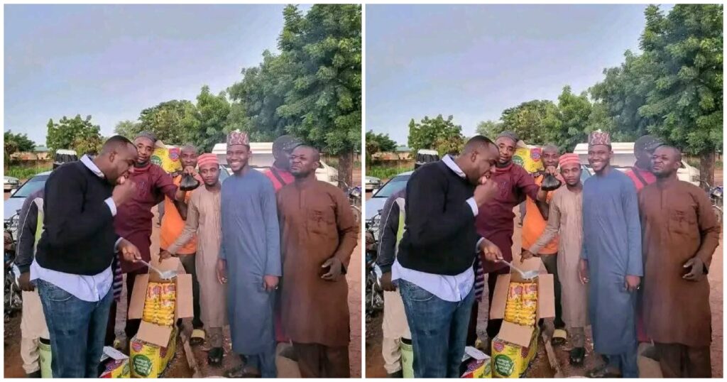 Shugaban karamar hukumar Municipal a jihar Kano kenan, Salim Hashim, ya ke dafa taliyar indomie domin karin kumallo ga ƴan jam’iyyar NNPP da ke garin Shanono don gudanar da zaben cike gurbi
