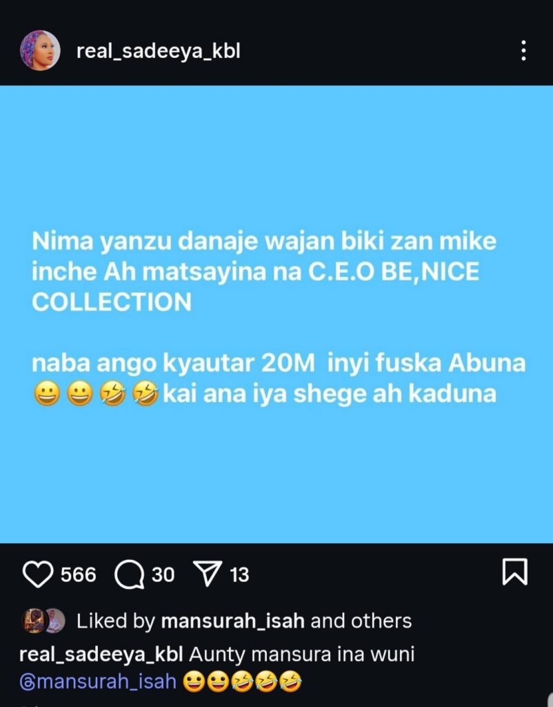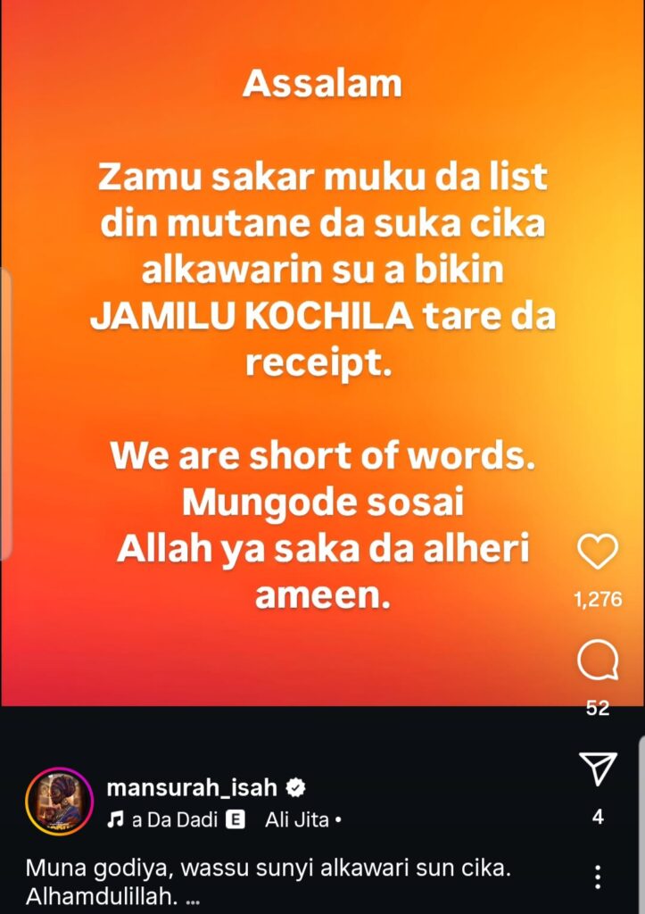 Kuma a jiya, Mansurah Isah ta wallafa Rasit din shaidar cika alkawarin da yayi.